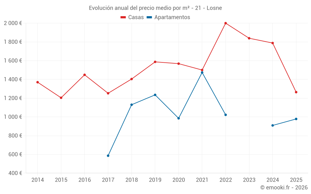 El precio mediano en las 29 transacciones de casas de los últimos 24 meses en la comuna de Losne fue de 1 723 € por metro cuadrado para un valor patrimonial medio de 145 000 €. Durante este período el 60% de las transacciones estuvieron entre 1 026 y 2 071 € por metro cuadrado (del 2º al 8º decil).