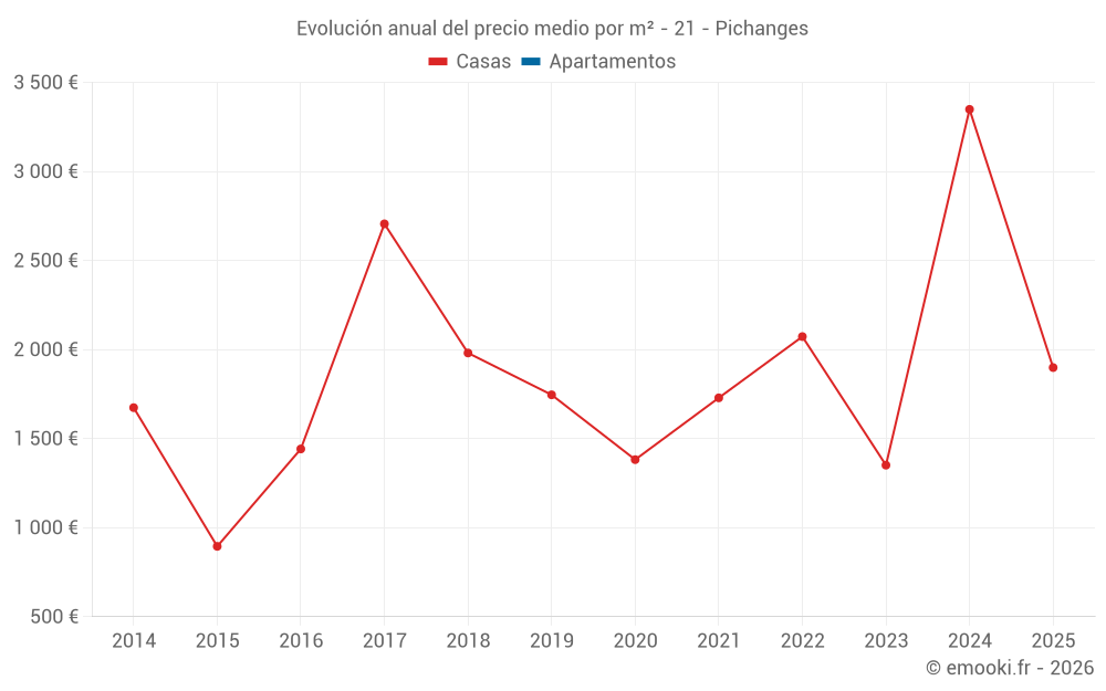 Mapa de precios de la vivienda en la comuna de Pichanges, elija una sección para ver las transacciones por parcela.