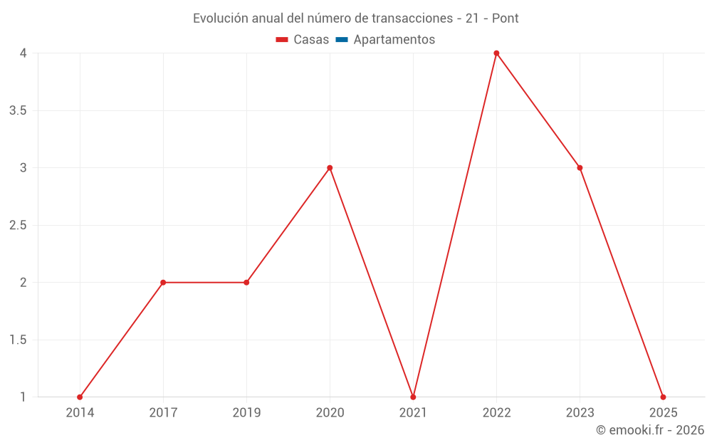 Mapa de precios de la vivienda en la comuna de Pont, elija una sección para ver las transacciones por parcela.