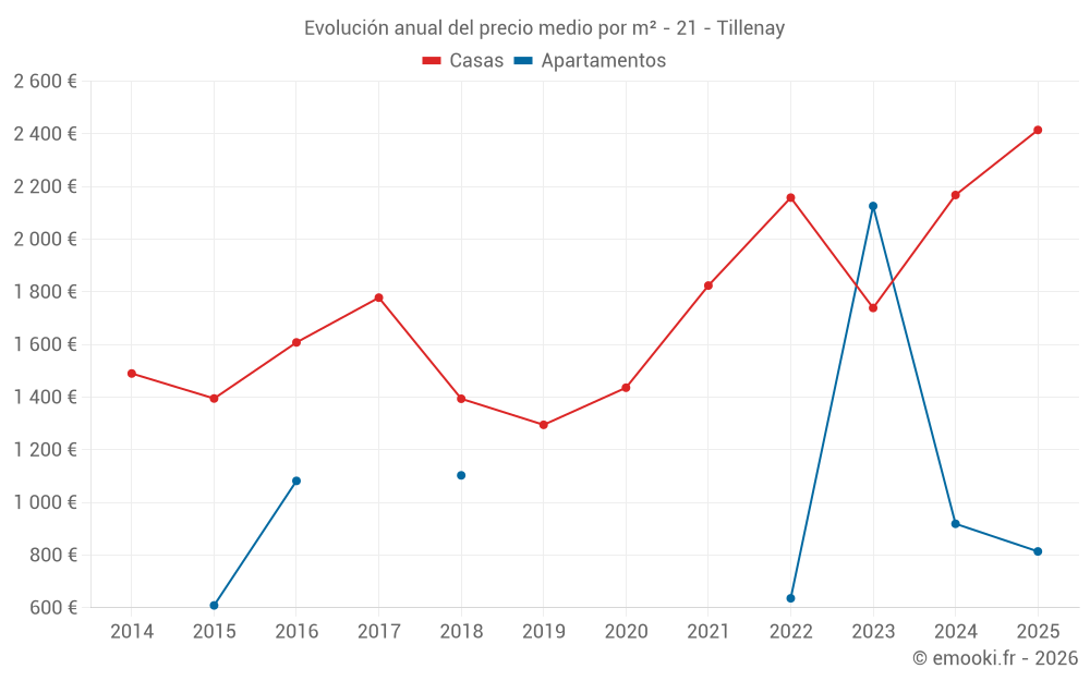 Mapa de precios de la vivienda en la comuna de Tillenay, elija una sección para ver las transacciones por parcela.