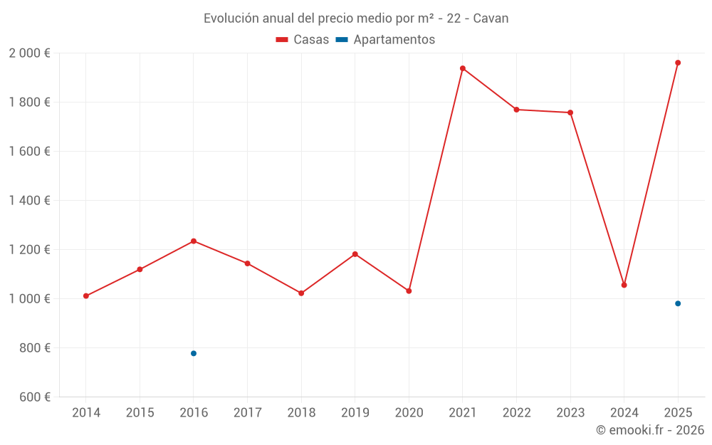 Evolución del precio medio por m² de las casas