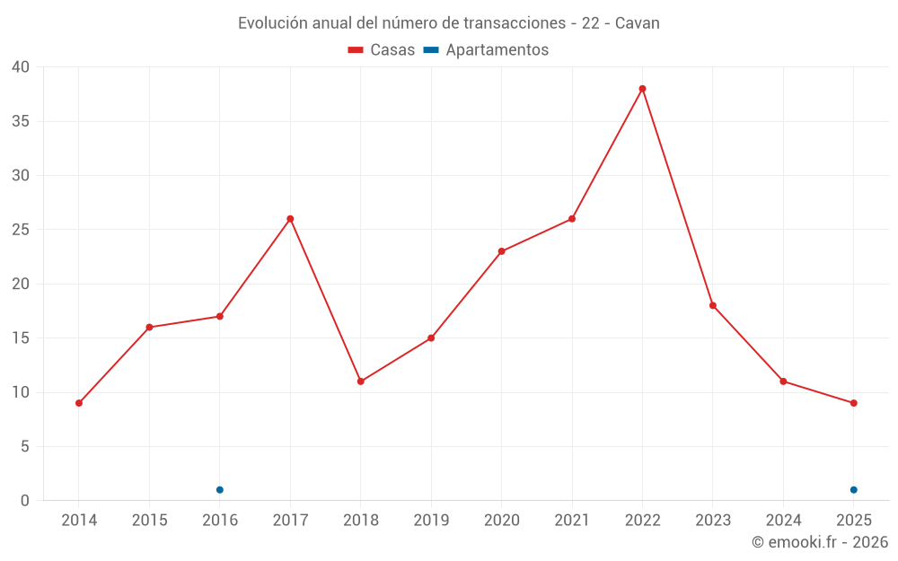 El precio mediano en las 17 transacciones de casas de los últimos 12 meses en la comuna de Cavan fue de 1 942 € por metro cuadrado para un valor patrimonial medio de 200 000 €. Durante este período el 60% de las transacciones estuvieron entre 1 125 y 2 353 € por metro cuadrado (del 2º al 8º decil).