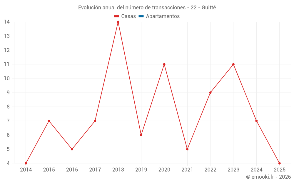El precio mediano en las 14 transacciones de casas de los últimos 24 meses en la comuna de Guitté fue de 1 905 € por metro cuadrado para un valor patrimonial medio de 150 000 €. Durante este período el 60% de las transacciones estuvieron entre 1 180 y 2 157 € por metro cuadrado (del 2º al 8º decil).