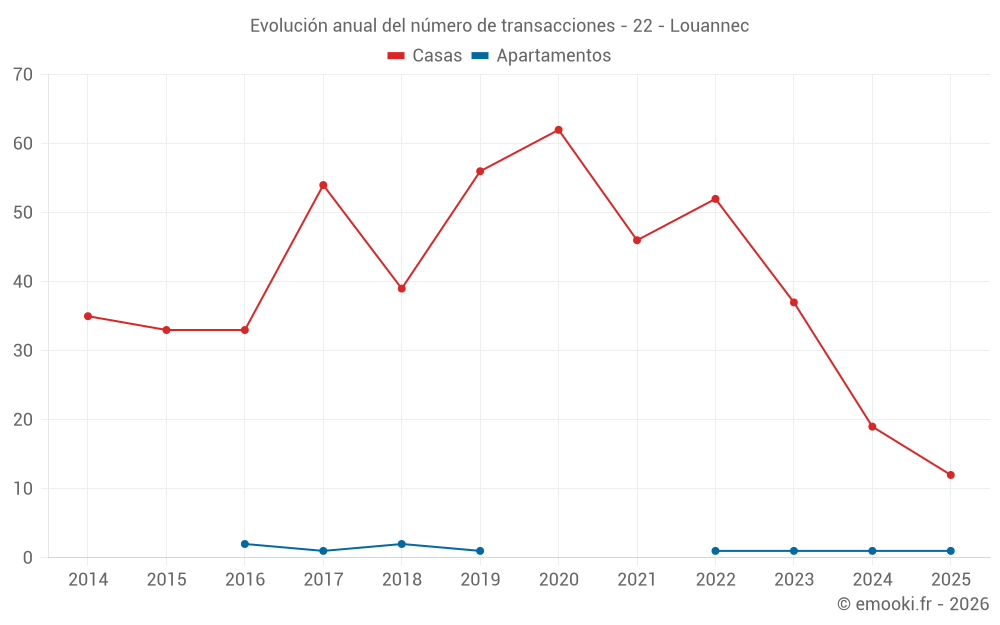 El precio mediano en las 25 transacciones de casas de los últimos 12 meses en la comuna de Louannec fue de 2 698 € por metro cuadrado para un valor patrimonial medio de 232 000 €. Durante este período el 60% de las transacciones estuvieron entre 1 704 y 3 055 € por metro cuadrado (del 2º al 8º decil).