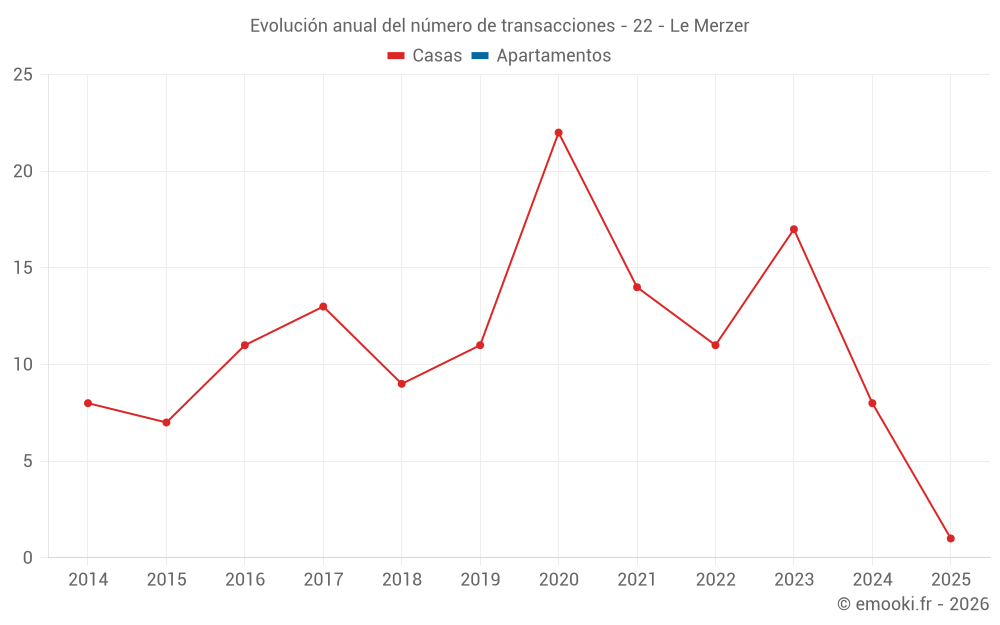 El precio mediano en las 17 transacciones de casas de los últimos 24 meses en la comuna de Le Merzer fue de 1 648 € por metro cuadrado para un valor patrimonial medio de 170 000 €. Durante este período el 60% de las transacciones estuvieron entre 1 172 y 2 464 € por metro cuadrado (del 2º al 8º decil).
