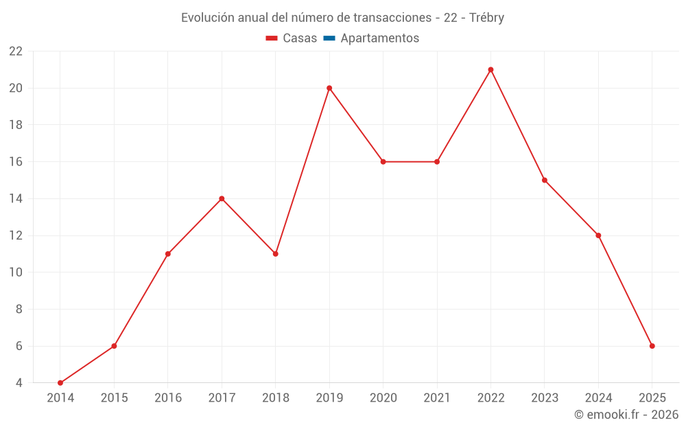 El precio mediano en las 25 transacciones de casas de los últimos 24 meses en la comuna de Trébry fue de 1 563 € por metro cuadrado para un valor patrimonial medio de 145 000 €. Durante este período el 60% de las transacciones estuvieron entre 917 y 2 633 € por metro cuadrado (del 2º al 8º decil).