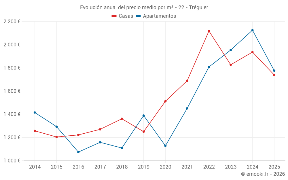 ¿Cuál es el precio por m2 de las casas en Tréguier?