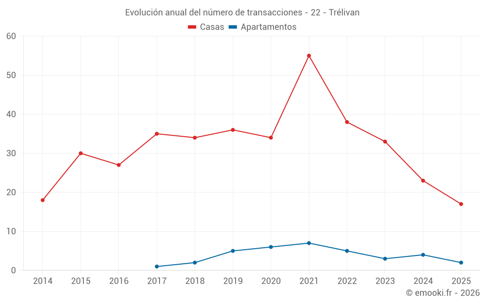 El precio mediano en las 29 transacciones de casas de los últimos 12 meses en la comuna de Trélivan fue de 2 343 € por metro cuadrado para un valor patrimonial medio de 245 000 €. Durante este período el 60% de las transacciones estuvieron entre 2 039 y 2 773 € por metro cuadrado (del 2º al 8º decil).