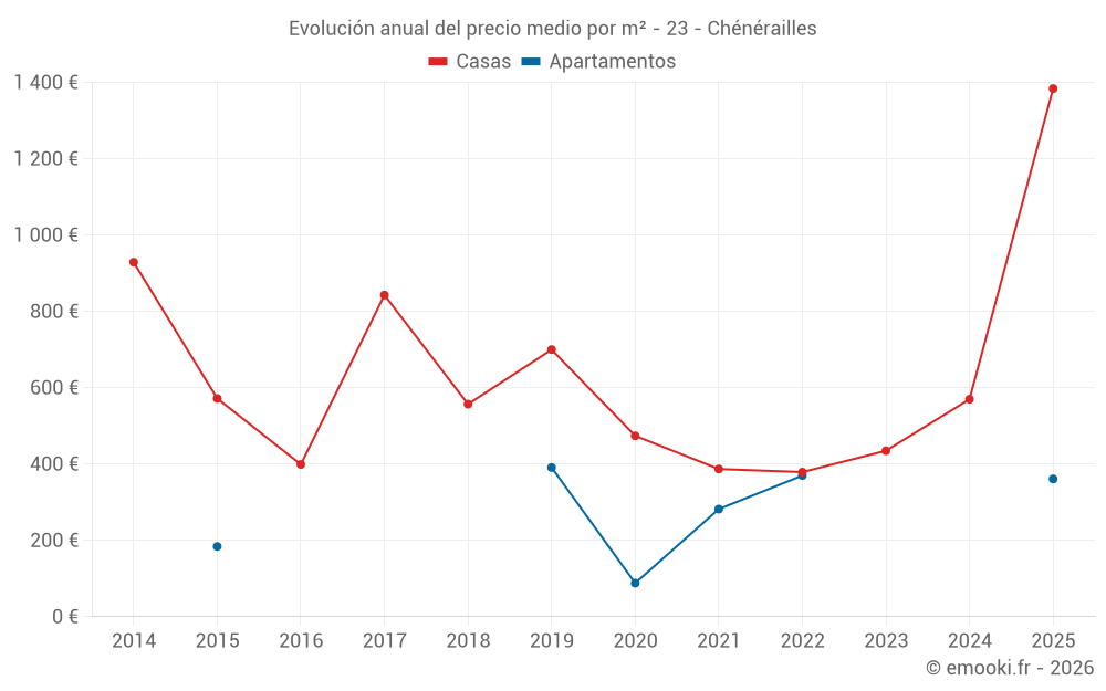 ¿Cuál es el precio por m2 de las casas en Chénérailles?