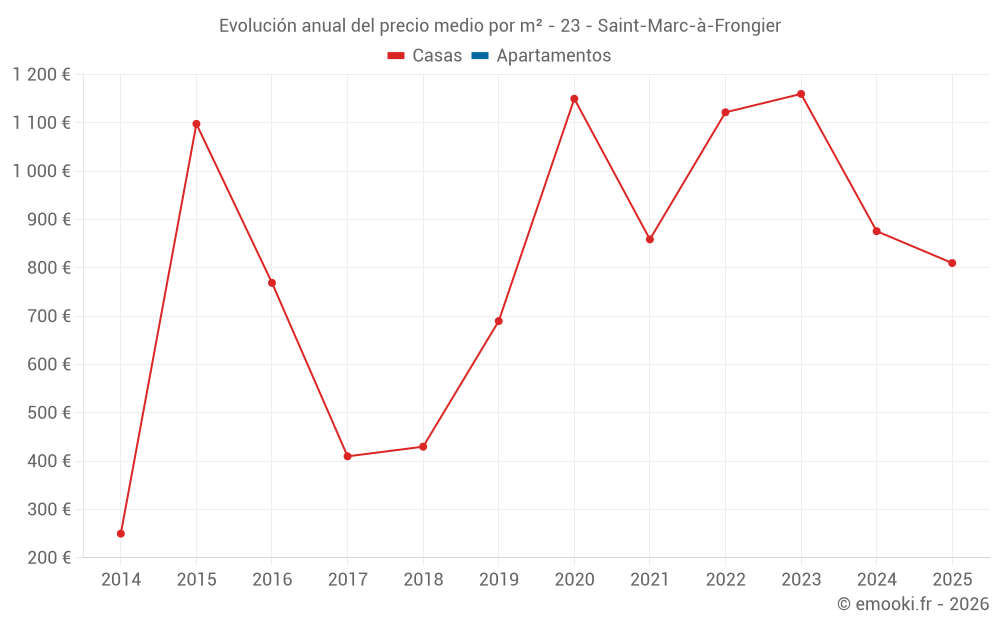 Mapa de precios de la vivienda en la comuna de Saint-Marc-à-Frongier, elija una sección para ver las transacciones por parcela.