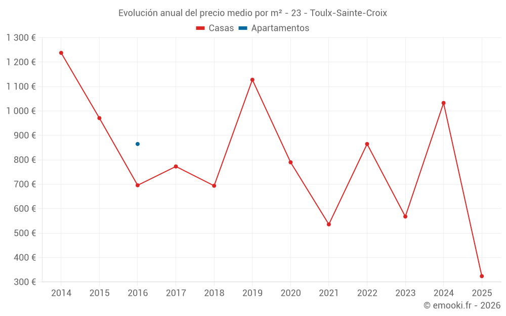 Mapa de precios de la vivienda en la comuna de Toulx-Sainte-Croix, elija una sección para ver las transacciones por parcela.