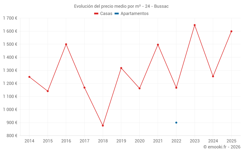 Mapa de precios de la vivienda en la comuna de Bussac, elija una sección para ver las transacciones por parcela.
