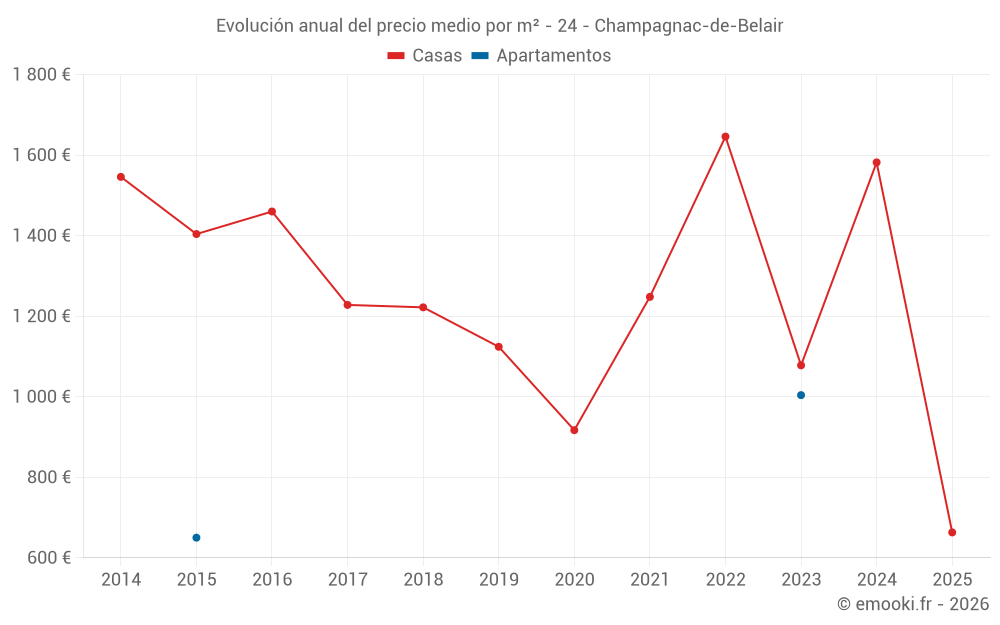 ¿Cuál es el precio por m2 de las casas en Champagnac-de-Belair?