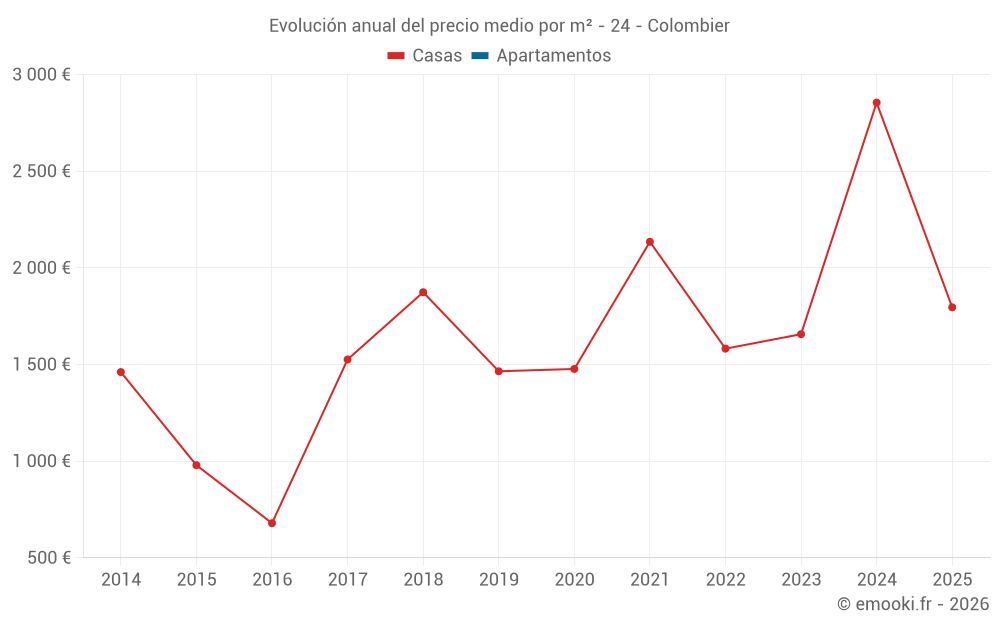 Evolución del precio medio por m² de las casas