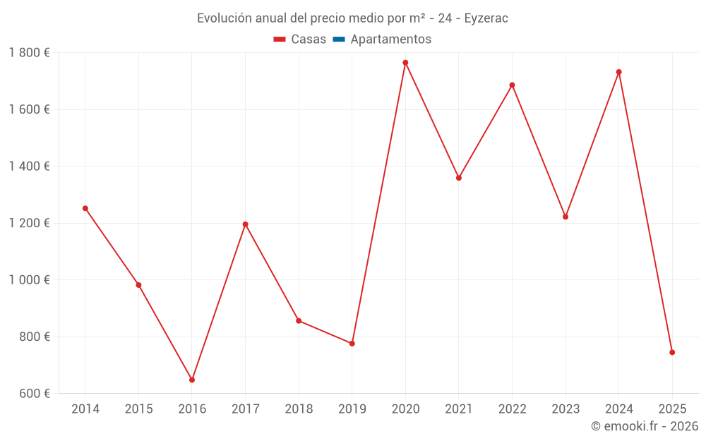 Evolución del precio medio por m² de las casas
