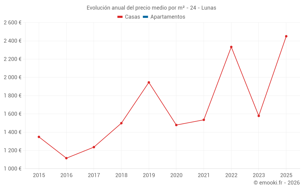 Mapa de precios de la vivienda en la comuna de Lunas, elija una sección para ver las transacciones por parcela.