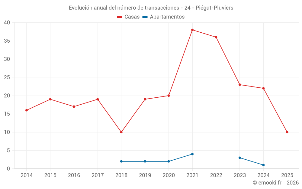 El precio mediano en las 20 transacciones de casas de los últimos 12 meses en la comuna de Piégut-Pluviers fue de 1 379 € por metro cuadrado para un valor patrimonial medio de 174 898 €. Durante este período el 60% de las transacciones estuvieron entre 946 y 1 961 € por metro cuadrado (del 2º al 8º decil).