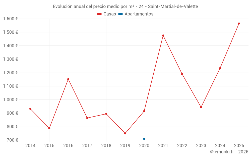 ¿Cuál es el precio por m2 de las casas en Saint-Martial-de-Valette?