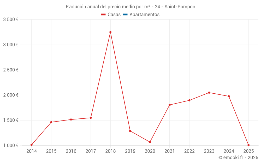 Evolución del precio medio por m² de las casas