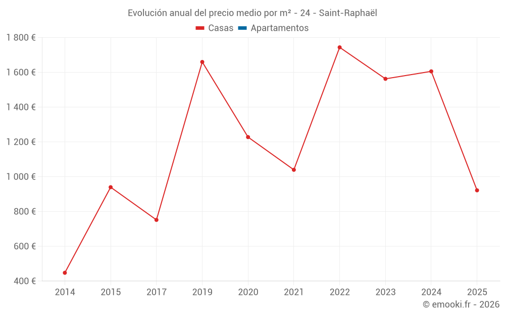 Mapa de precios de la vivienda en la comuna de Saint-Raphaël, elija una sección para ver las transacciones por parcela.