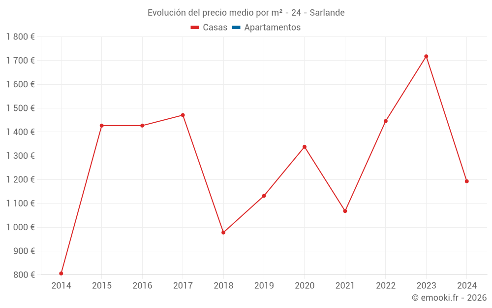 Mapa de precios de la vivienda en la comuna de Sarlande, elija una sección para ver las transacciones por parcela.