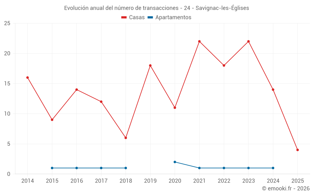 El precio mediano en las 28 transacciones de casas de los últimos 24 meses en la comuna de Savignac-les-Églises fue de 1 346 € por metro cuadrado para un valor patrimonial medio de 155 000 €. Durante este período el 60% de las transacciones estuvieron entre 785 y 2 207 € por metro cuadrado (del 2º al 8º decil).