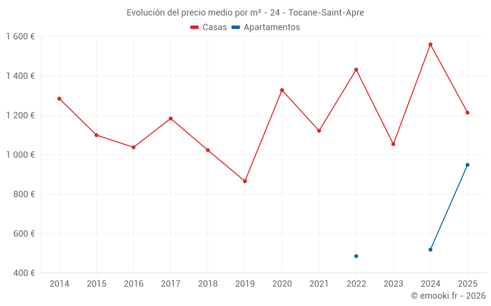 Mapa de precios de la vivienda en la comuna de Tocane-Saint-Apre, elija una sección para ver las transacciones por parcela.