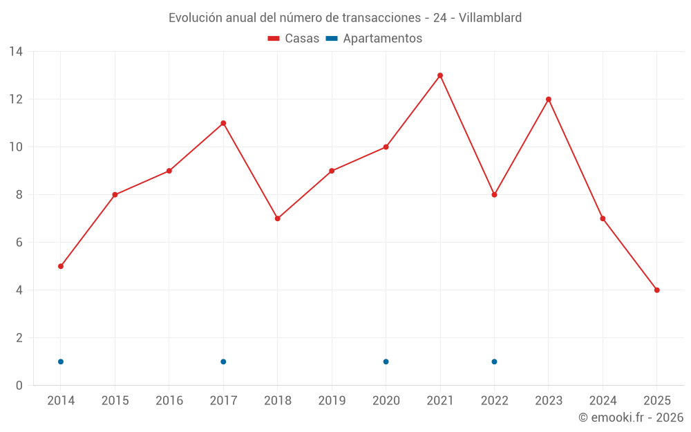 El precio mediano en las 17 transacciones de casas de los últimos 24 meses en la comuna de Villamblard fue de 1 252 € por metro cuadrado para un valor patrimonial medio de 172 500 €. Durante este período el 60% de las transacciones estuvieron entre 911 y 1 896 € por metro cuadrado (del 2º al 8º decil).
