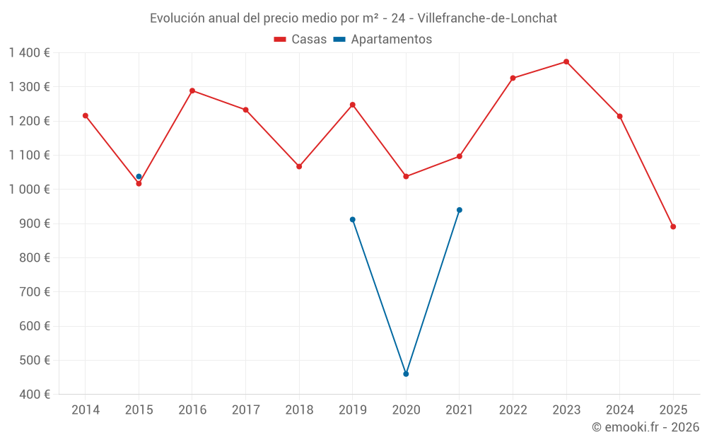 ¿Cuál es el precio por m2 de las casas en Villefranche-de-Lonchat?