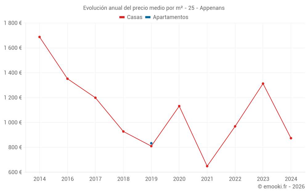 Evolución del precio medio por m² de los apartamentos