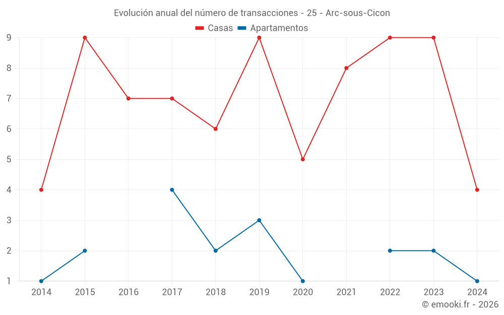 Mapa de precios de la vivienda en la comuna de Arc-sous-Cicon, elija una sección para ver las transacciones por parcela.