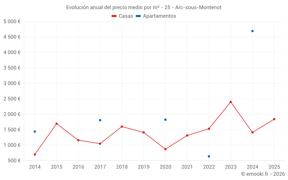 Mapa de precios de la vivienda en la comuna de Arc-sous-Montenot, elija una sección para ver las transacciones por parcela.