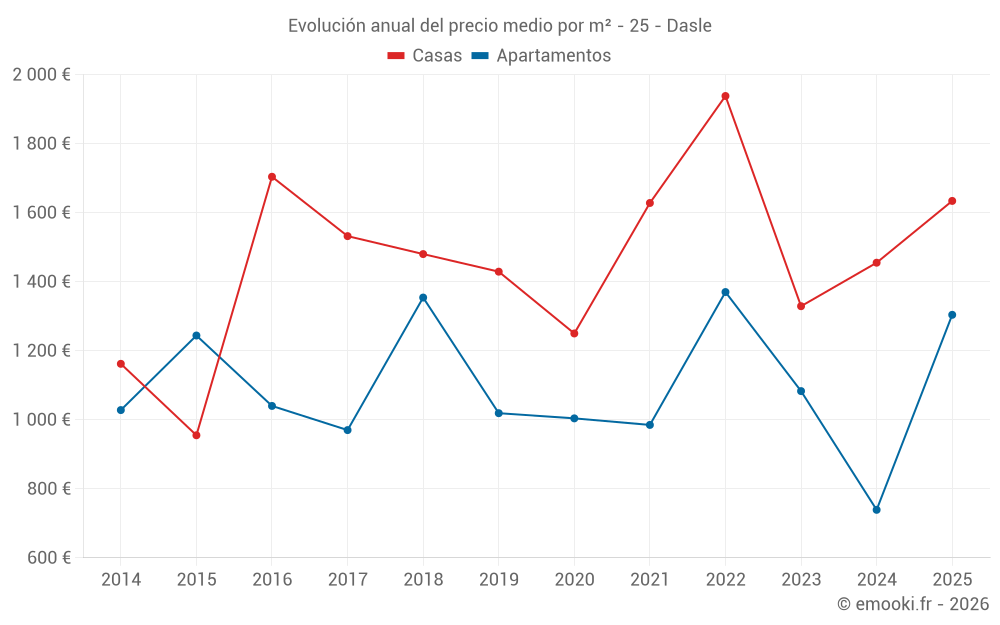 ¿Cuál es el precio por m2 de las casas en Dasle?