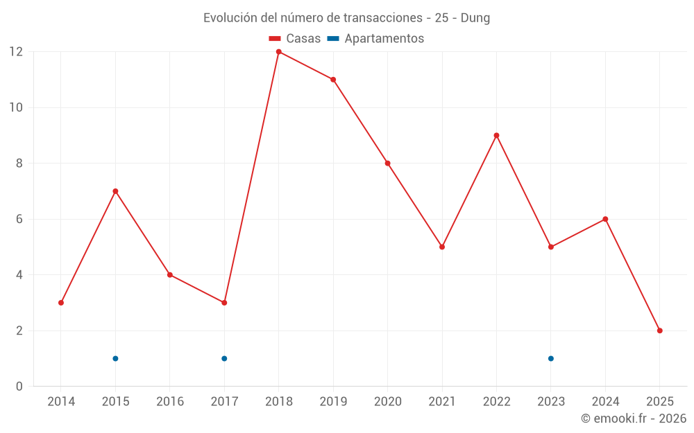 Mapa de precios de la vivienda en la comuna de Dung, elija una sección para ver las transacciones por parcela.