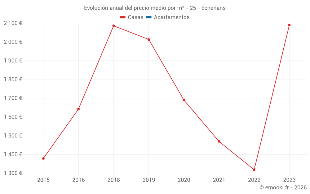 Evolución del precio medio por m² de los apartamentos