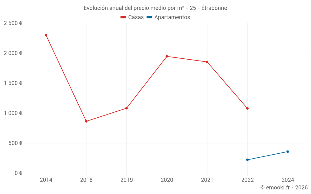 Evolución del precio medio por m² de las casas