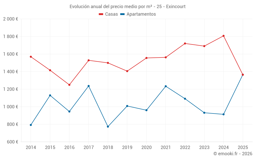 ¿Cuál es el precio por m2 de las casas en Exincourt?