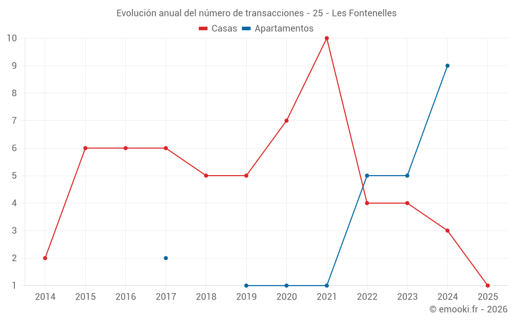 El precio mediano en las 14 transacciones de apartamentos de los últimos 24 meses en la comuna de Les Fontenelles fue de 1 070 € por metro cuadrado para un valor patrimonial medio de 80 500 €. Durante este período el 60% de las transacciones estuvieron entre 603 y 1 476 € por metro cuadrado (del 2º al 8º decil).