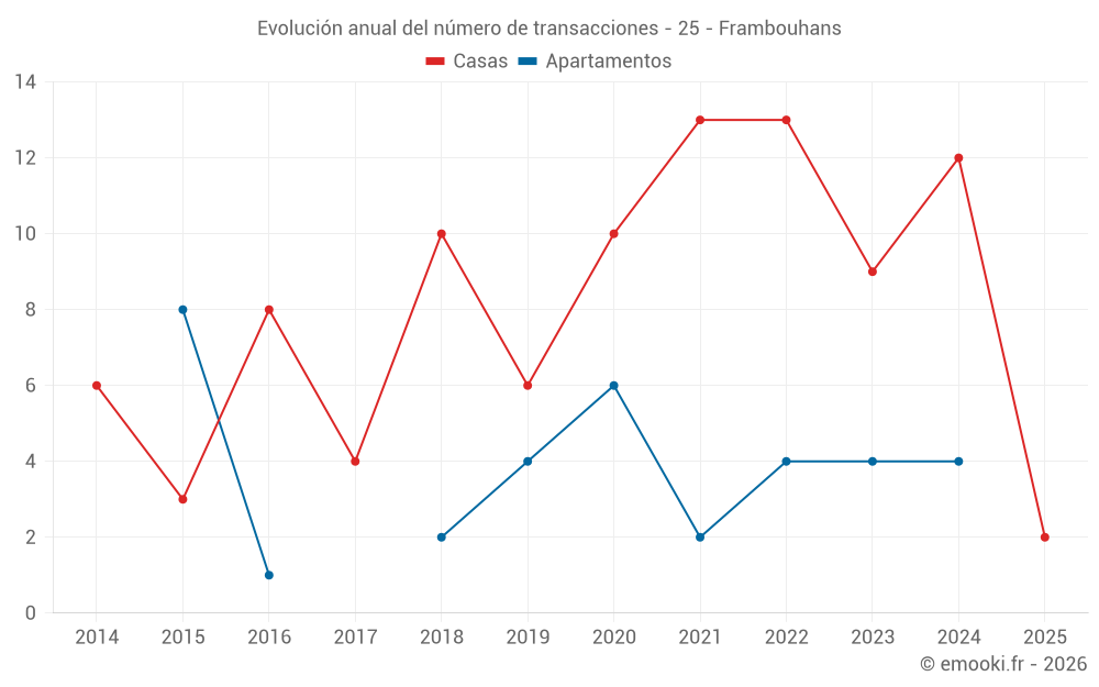 El precio mediano en las 17 transacciones de casas de los últimos 24 meses en la comuna de Frambouhans fue de 2 505 € por metro cuadrado para un valor patrimonial medio de 257 370 €. Durante este período el 60% de las transacciones estuvieron entre 1 729 y 2 871 € por metro cuadrado (del 2º al 8º decil).