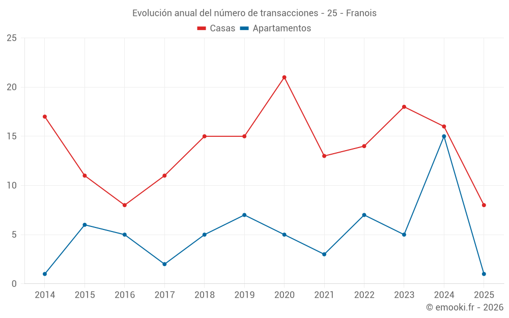 El precio mediano en las 19 transacciones de apartamentos de los últimos 24 meses en la comuna de Franois fue de 1 905 € por metro cuadrado para un valor patrimonial medio de 150 000 €. Durante este período el 60% de las transacciones estuvieron entre 1 602 y 2 709 € por metro cuadrado (del 2º al 8º decil).