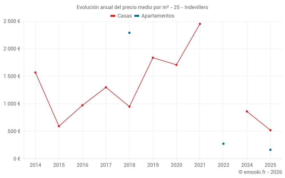 Mapa de precios de la vivienda en la comuna de Indevillers, elija una sección para ver las transacciones por parcela.