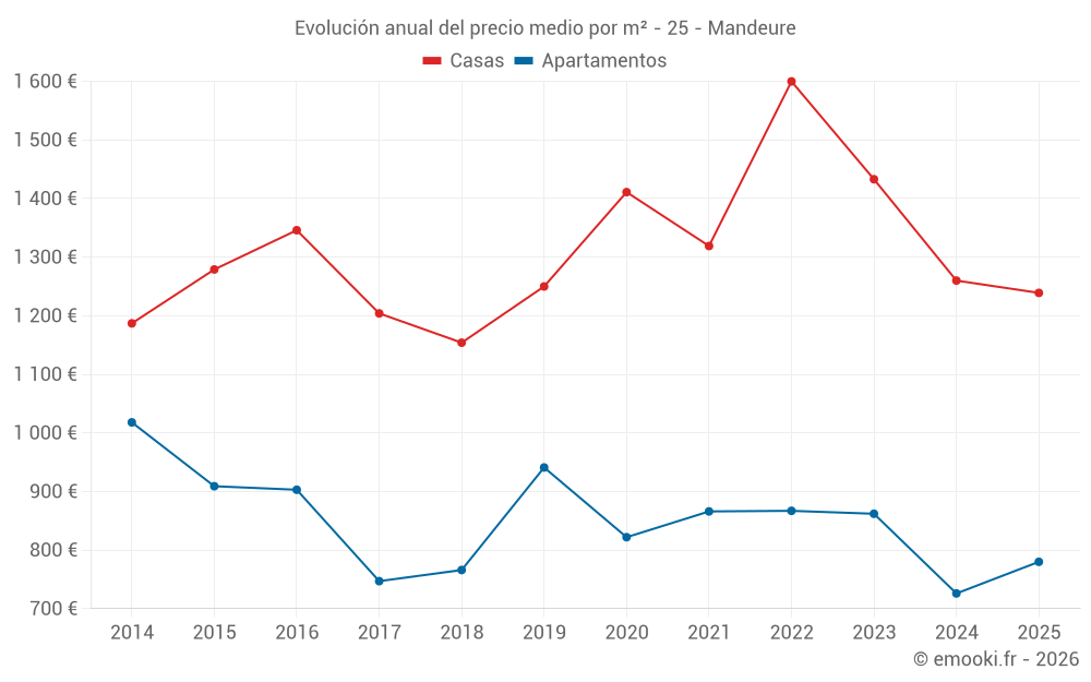 ¿Cuál es el precio por m2 de las casas en Mandeure?