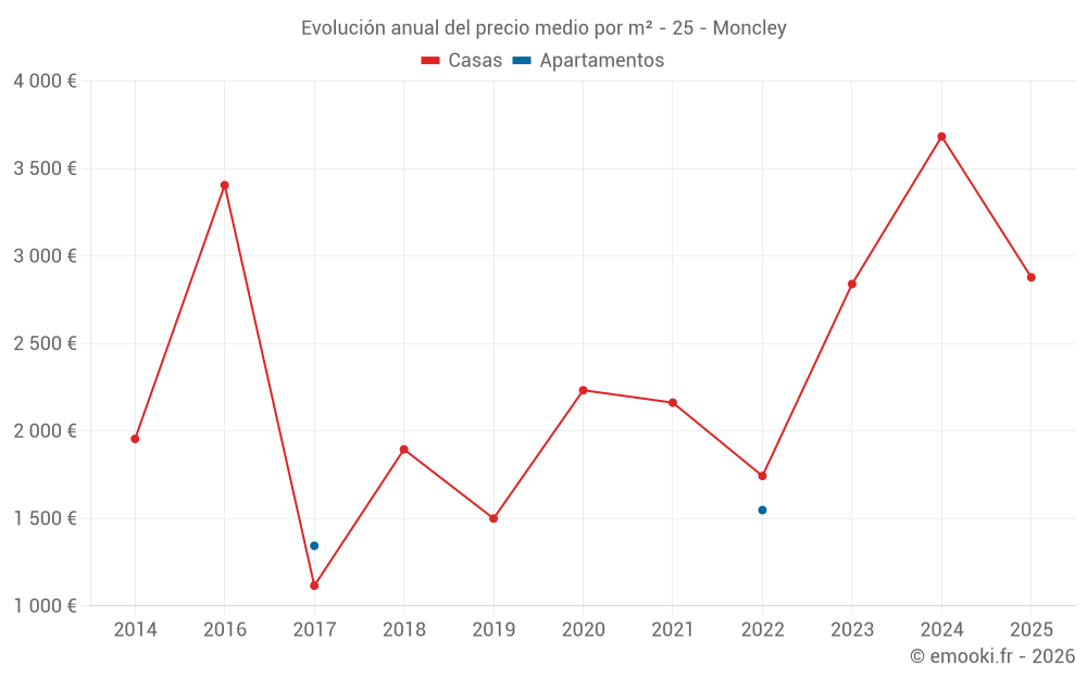 Mapa de precios de la vivienda en la comuna de Moncley, elija una sección para ver las transacciones por parcela.