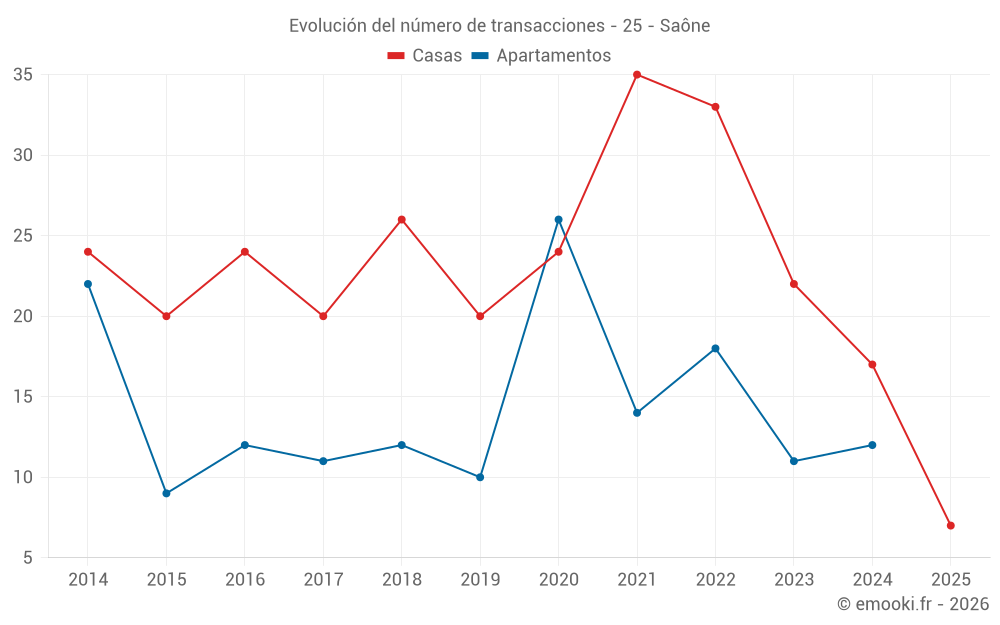El precio mediano en las 18 transacciones de apartamentos de los últimos 24 meses en la comuna de Saône fue de 2 294 € por metro cuadrado para un valor patrimonial medio de 148 215 €. Durante este período el 60% de las transacciones estuvieron entre 1 713 y 2 535 € por metro cuadrado (del 2º al 8º decil).