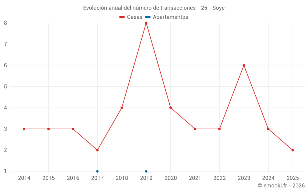 Mapa de precios de la vivienda en la comuna de Soye, elija una sección para ver las transacciones por parcela.