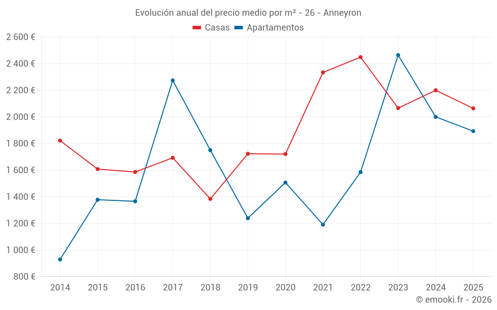 ¿Cuál es el precio por m2 de las casas en Anneyron?