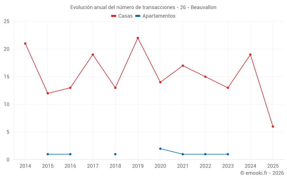 El precio mediano en las 17 transacciones de casas de los últimos 12 meses en la comuna de Beauvallon fue de 2 679 € por metro cuadrado para un valor patrimonial medio de 252 100 €. Durante este período el 60% de las transacciones estuvieron entre 2 466 y 3 111 € por metro cuadrado (del 2º al 8º decil).