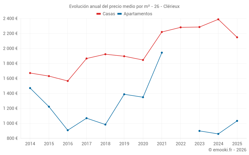 ¿Cuál es el precio por m2 de las casas en Clérieux?