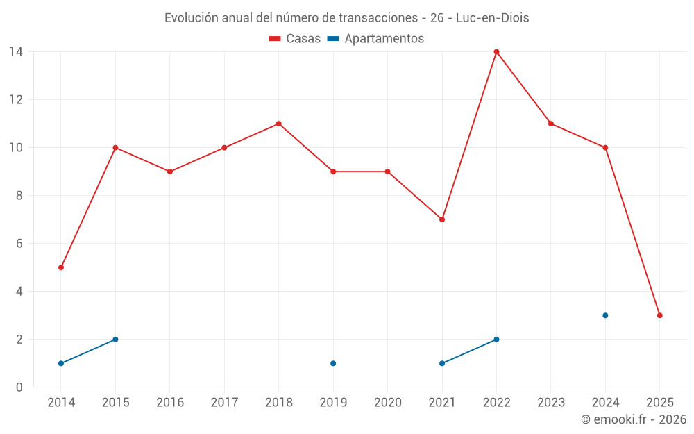 El precio mediano en las 21 transacciones de casas de los últimos 24 meses en la comuna de Luc-en-Diois fue de 1 772 € por metro cuadrado para un valor patrimonial medio de 145 220 €. Durante este período el 60% de las transacciones estuvieron entre 1 042 y 2 800 € por metro cuadrado (del 2º al 8º decil).