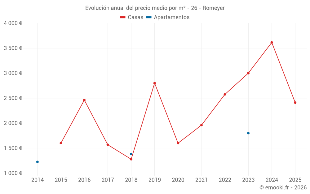 Evolución del precio medio por m² de las casas